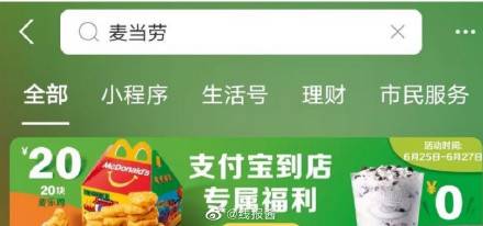 支付宝app搜 麦当劳 有领随单0元购麦旋风券