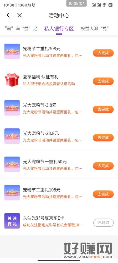 光大银行,我的,我的权益服务,下拉找到点亮光彩号,领取10e