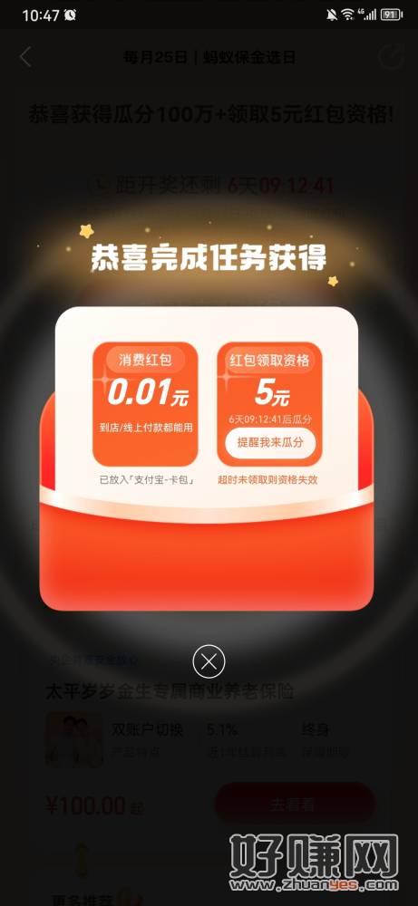 zfb打开 完成五个任务,必中5元消费券(7.01才能领),弄完记得退保