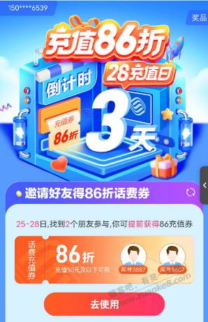 拉两人助力 43充50话费