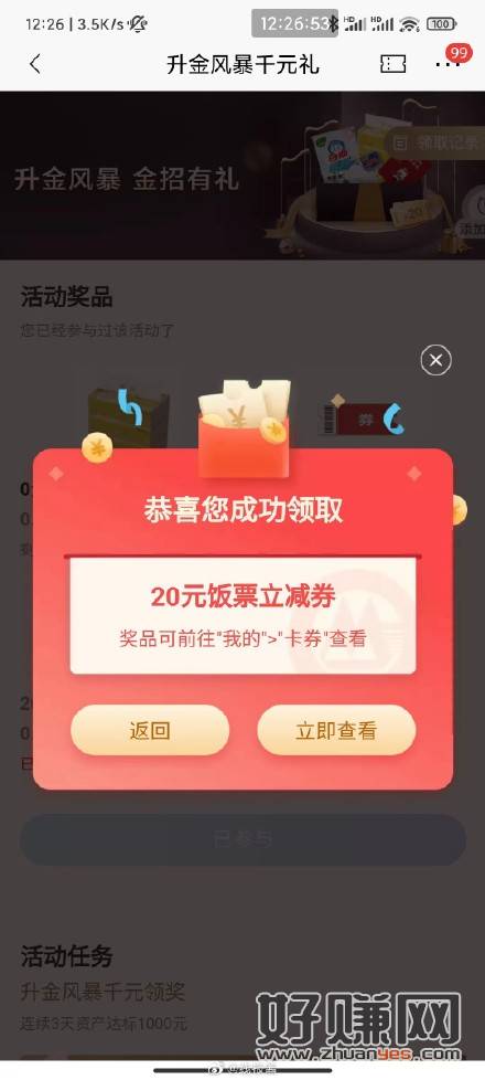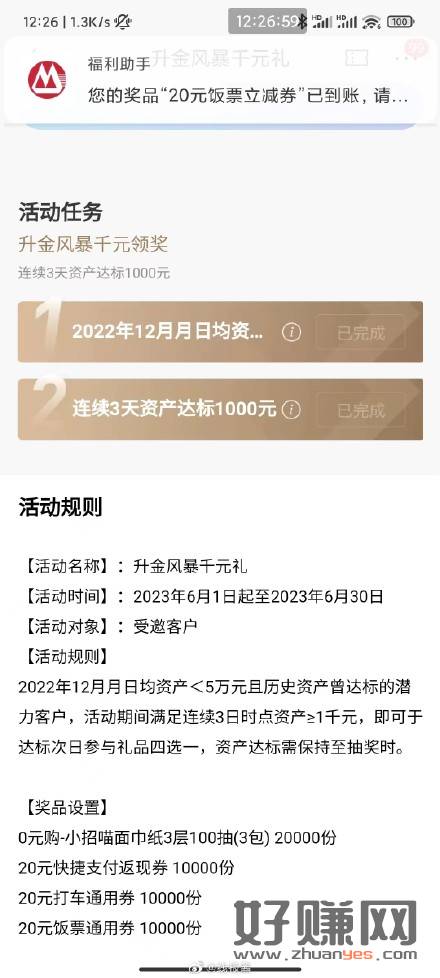 2.招行卡有1k存款三天(没存的现在去存,三天之后再领,库存还有挺多的)