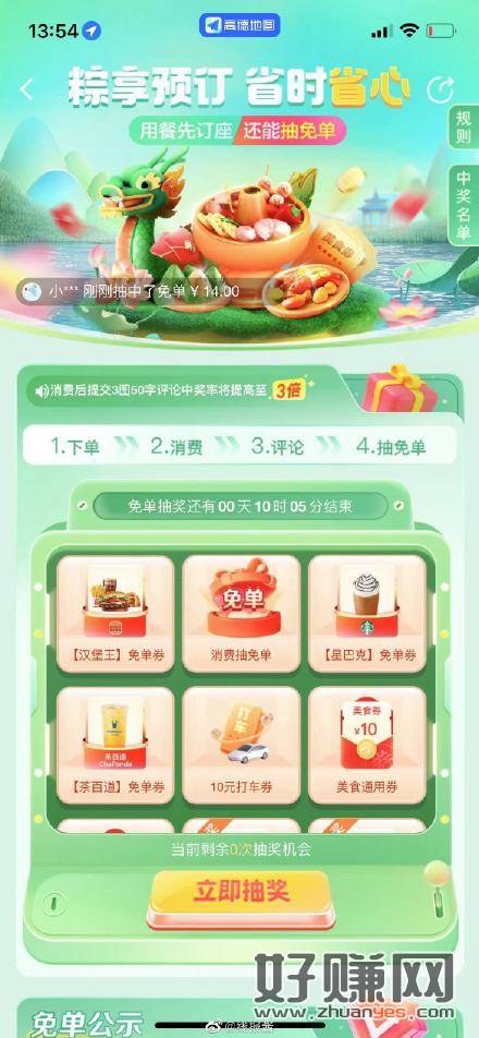 高德地图APP,生活,点美食进去自动弹抽奖