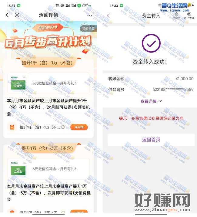 完成光大银行金融资产当月末资产较上月末提升1000元及以任务 次月10日 即可领5元立减金