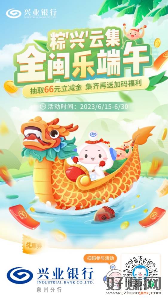 每天去领粽子得兴业立减金,差一个粽子的时候去开个泉州二类账户,然后合成必得50立减金,最后销户即可(泉州活动挺多的,不推荐销户)有兴业卡的也可以开