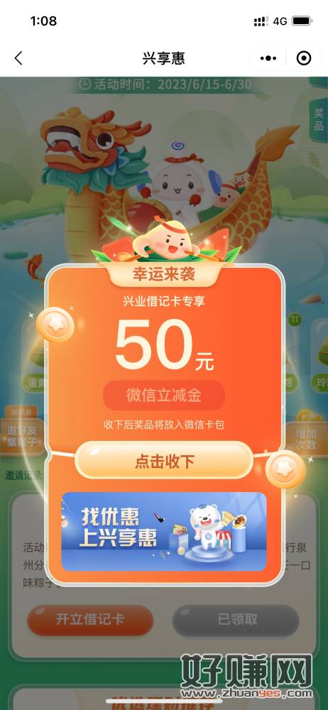 每天去领粽子得兴业立减金,差一个粽子的时候去开个泉州二类账户