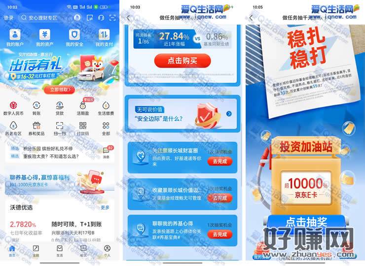 交行聊养基心得赢福利 抽1-1000元京东E卡