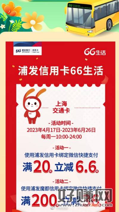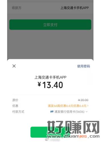 上海交通卡APP,充值20用微信支付,浦发信用卡有20-6.6