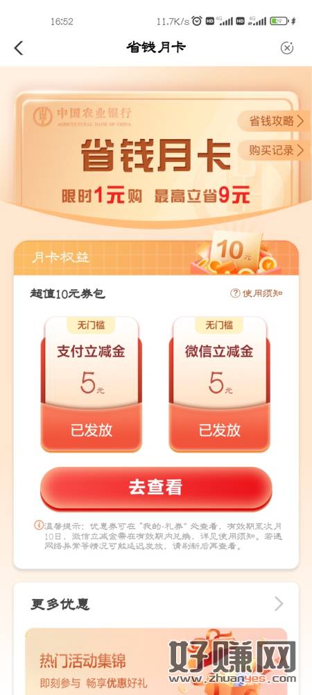 农行app-生活-热门活动-更多 进去横幅直接1买10立减金