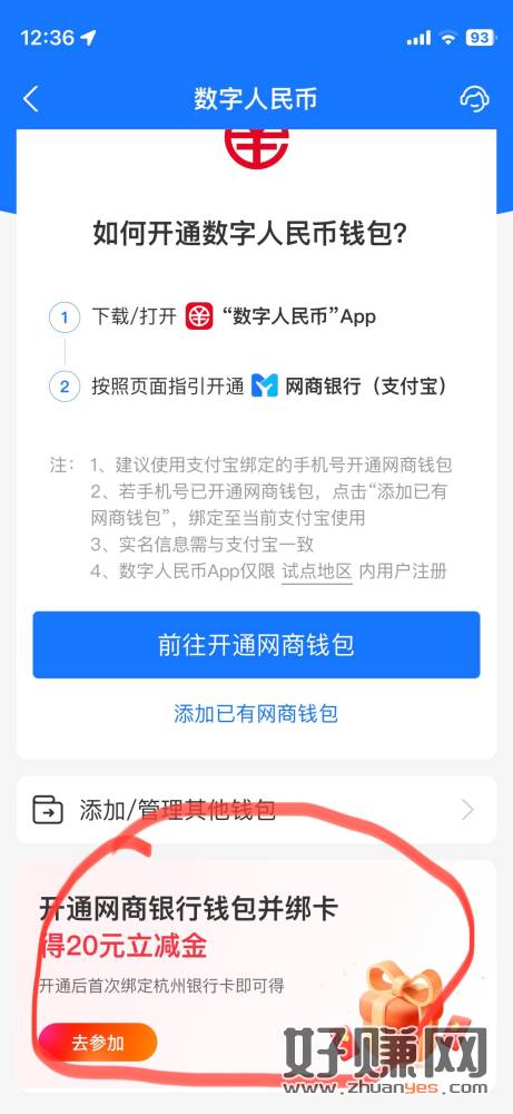 支付宝,数字人民币。活动范围全国 开通首绑杭州银行得20立减金