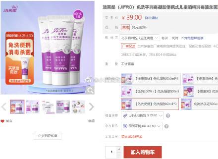 洁芙柔 免洗手消毒凝胶便携式60ml*3支装,买3件29.75