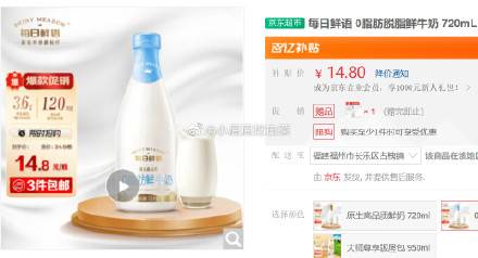 每日鲜语 0脂肪脱脂鲜牛奶 720ml,14.8,