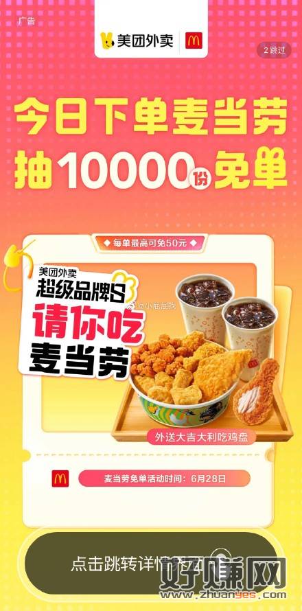 今日下单抽免单,限量10000份,每份最高可免50元,需确认收货才可抽奖