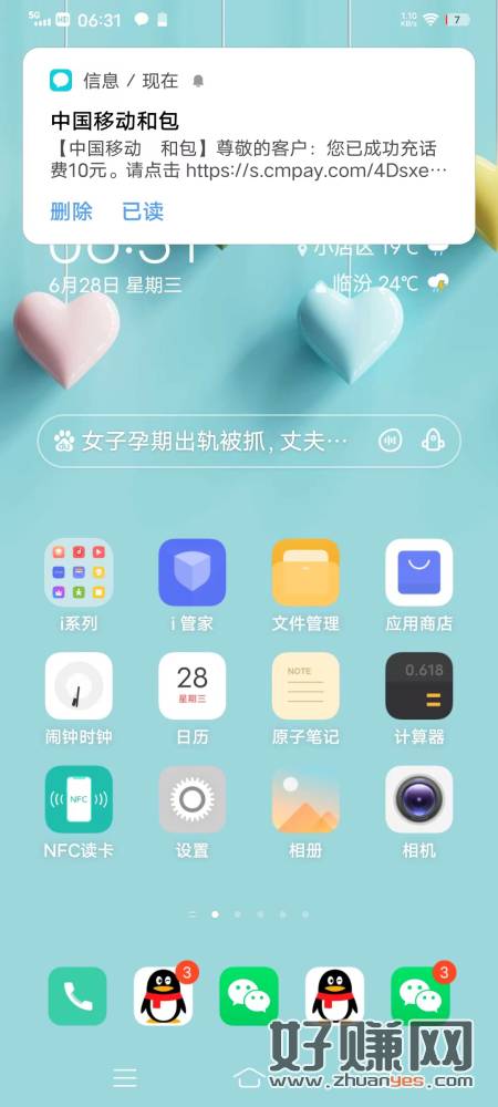 有中信卡的 浏览器打开跳转到App 5充10话费,到账很快,赞谢谢