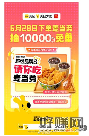 今天美团外卖下单麦当劳,有随机免单,小伙伴反馈免单号码是03,08,56,67,83,上限是50元