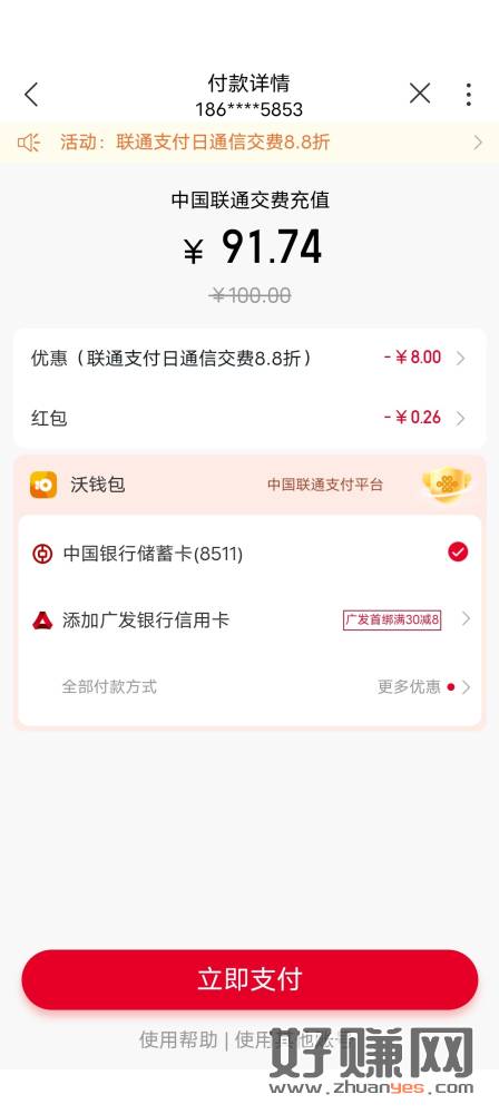 不清楚地区 联通活动 买充值卡100转手出
