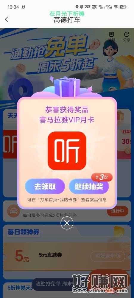 高德地图,打车,通勤特惠弹窗,喜马拉雅月卡