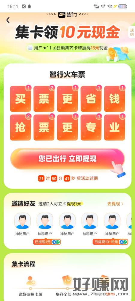第二个需要这两天有出门买过车票,在订单界面有这个独享,要拉人头,基本上6个人头就可以合成领取10块,还有别的活动自己看着弄吧!我已经提了31了