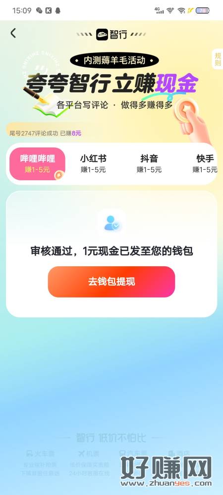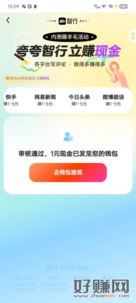 智行火车票app,需要下过单的用户参与,新人没这里面买过票的无视,第一个活动评论领现金,各种软件去评论,审核很快,做过的无视