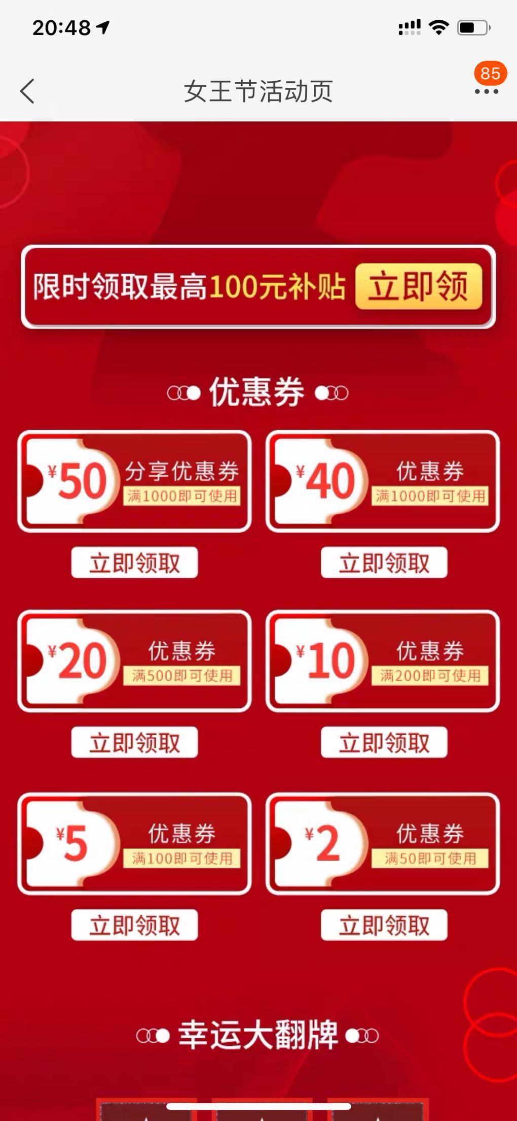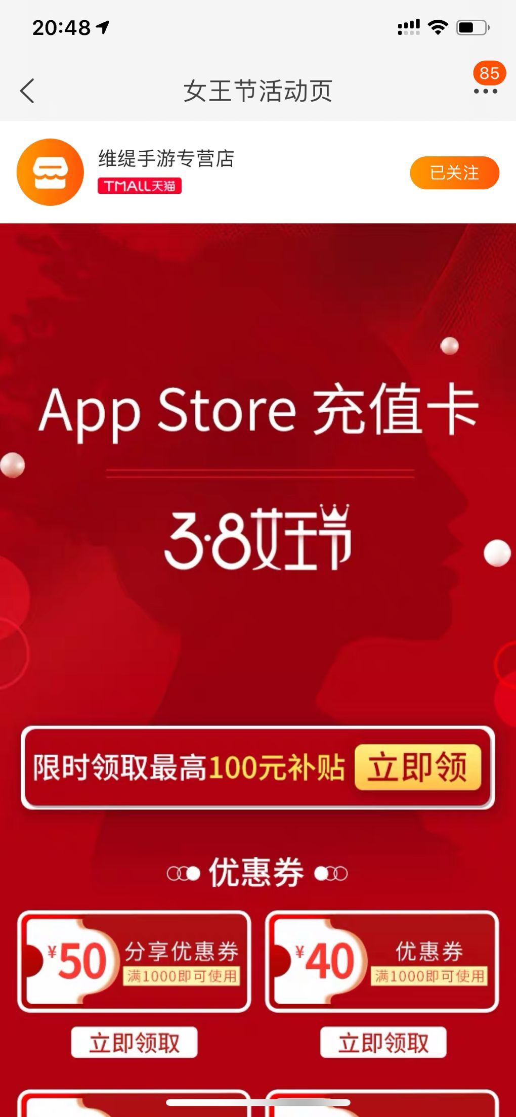 天猫苹果卡96折活动,最低还有9折的券,38妇女节活动,这几天可以多抢点