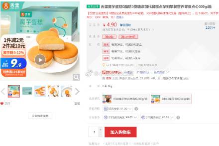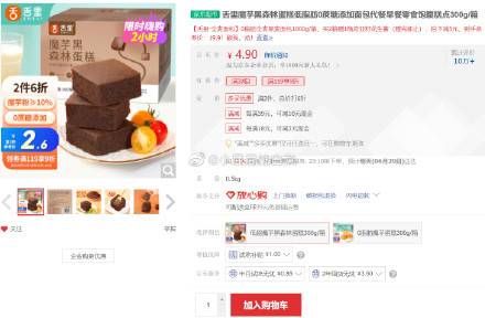 舌里魔芋黑森林蛋糕低脂肪300g/箱,买2件3.88
