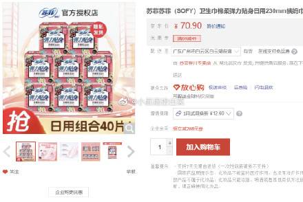 苏菲 卫生巾棉柔弹力贴身日用230mm*40片,加购到京喜特价app页面可领19-4券,17.9包邮
