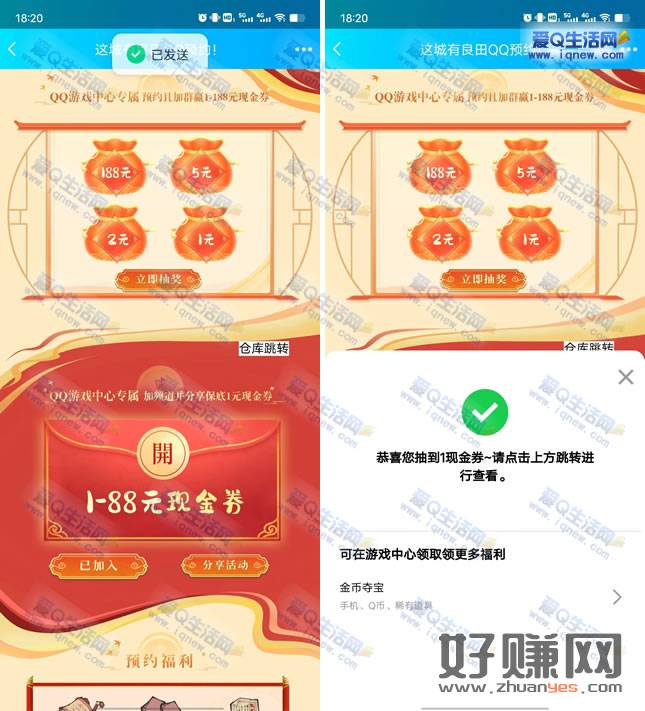亲测抽中1元现金券,游戏上线后下载注册兑换到账