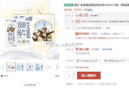 蒙牛 未来星双原生纯牛奶190ml×12包,买4件99