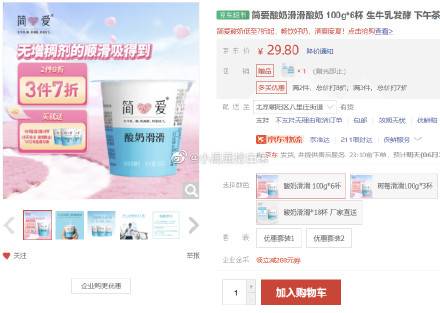 简爱原味高蛋白酸奶 100ml*3杯 无勺版,买3件62.58包邮