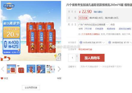 六个核桃 核桃乳240ml*6罐,12.9包邮