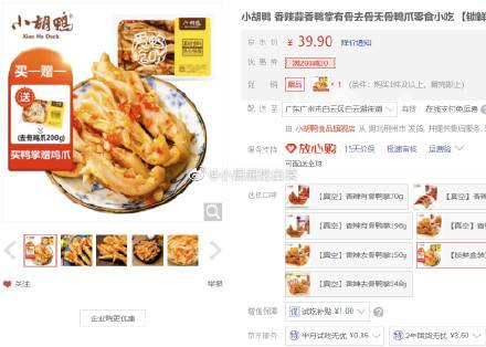 小胡鸭 蒜香无骨鸭掌200g,24.9包邮,买1送1到手2件