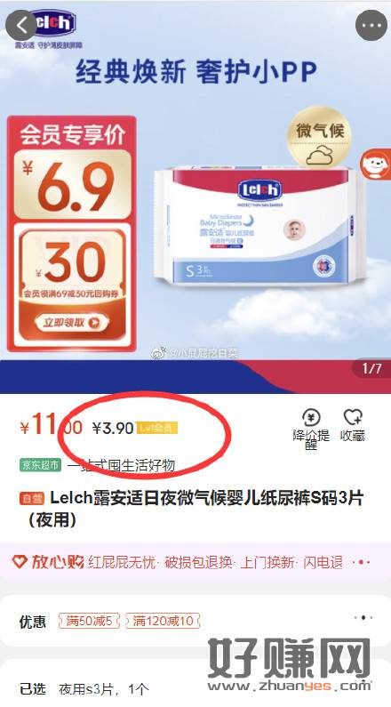 露安适 日夜分护纸尿裤/安心裤,入会价3.9