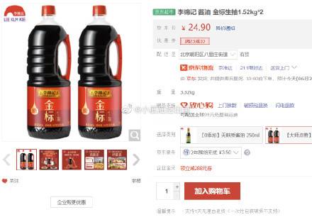 李锦记 酱油 金标生抽1.52kg*2,13.66,全品9-2券
