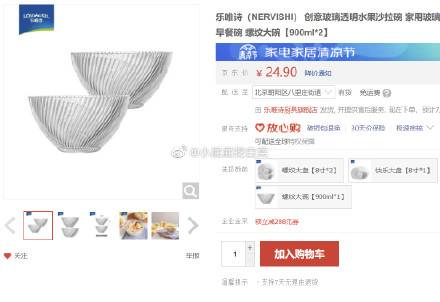 乐唯诗 玻璃透明水果沙拉碗900ml*2,12.9包邮
