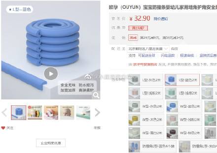 全品50-5券,欧孕 宝宝防撞条加厚L型-蓝色2米,买2件17.8
