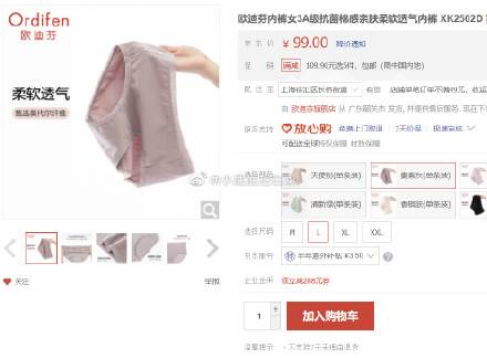 欧迪芬内裤 女3A级抗菌棉感亲肤内裤单条装,买5件69.9