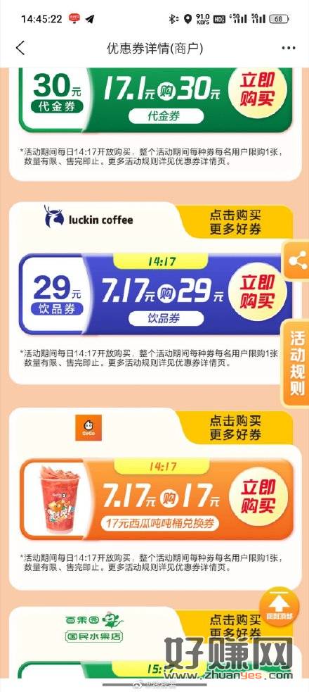 建行生活搜瑞幸咖啡,目前7.17买瑞幸29还有货