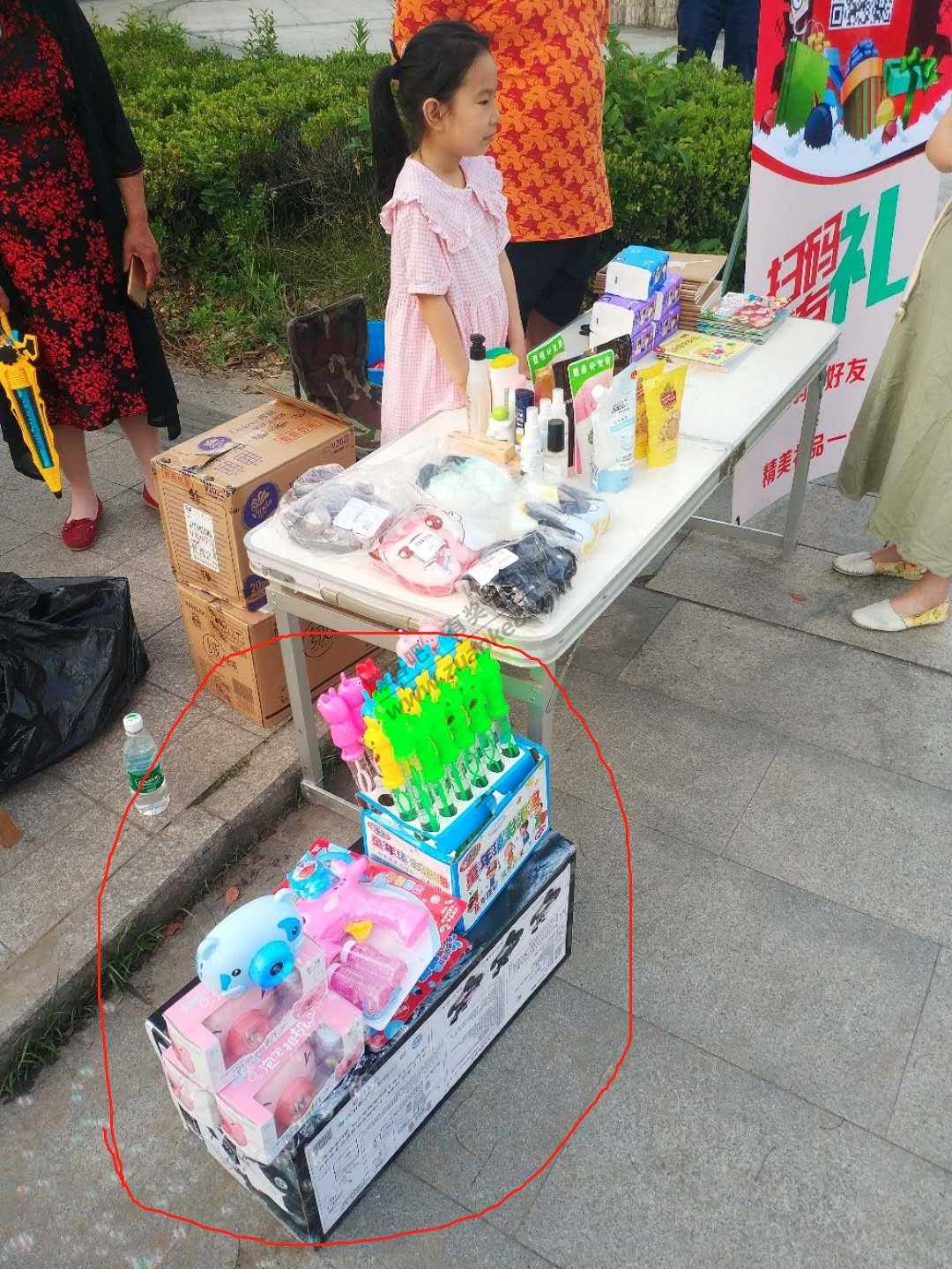 今天下午5.40出摊,晚上20.20收摊,卖掉电动泡泡机6个(每个附送电池三粒),手动挤压式泡泡机1个,抽拉式嘴吹式4个,收入155,成本89.6,纯收入65.4,分享下第二天心得,玩具太少,天还没黑的时候,泡泡机看的人挺多的,天渐渐暗下来后,泡泡机基本没人光顾了,即便你开着电动泡泡机放泡泡基本看不清楚什么,天黑的时候旁边发光玩具卖的挺好的,脸皮越来越厚了,开始会调侃顾客,有时还会扯几嗓子。图中红色圈圈是我的摊位,比较不起眼,今天小侄子又在帮我拉顾客呢