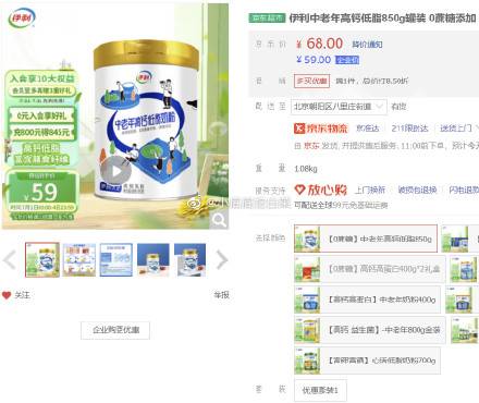 伊利中老年高钙低脂罐装850g,如有首购5礼金+加购到京喜特价app提交,35.15