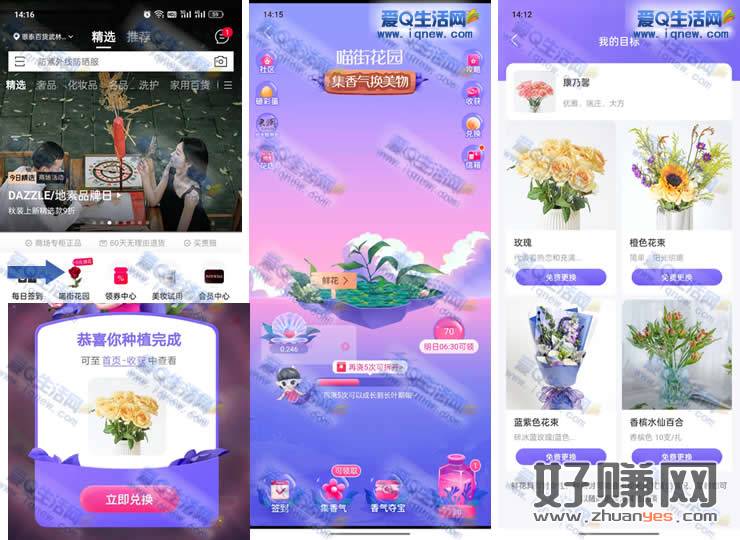任务获得香水养花,养成了之后就可以0元包邮到家了哦