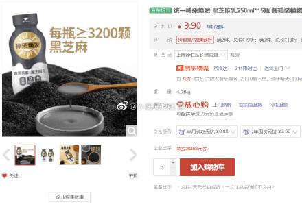 统一 神采焕发 黑芝麻乳250ml*15瓶,9.9,3件8折
