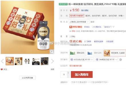 统一 神采焕发 黑芝麻乳250ml*10瓶,9.9,3件8折