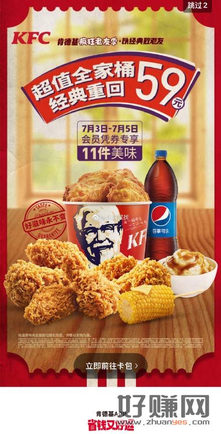 肯德基 卡券包 超值全家桶,59(7月3日至7月5日),今天有人吃了吗?