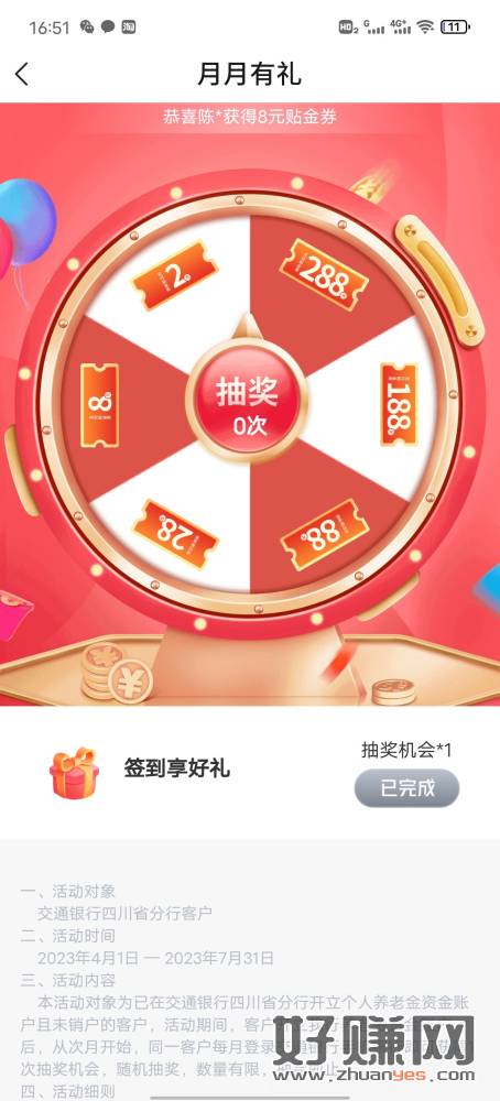 定位改成都-个人养老金-月月有礼-签到抽一次