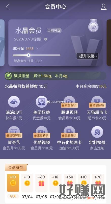 建设银行 会员中心 本月水晶会员,可领滴滴出行快车券5元、美团权益代金券10元