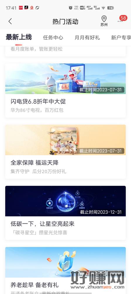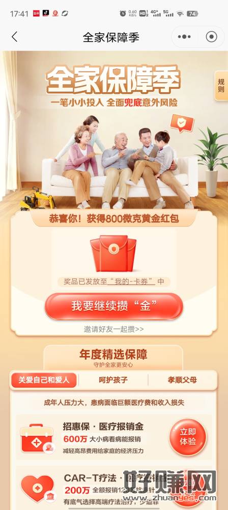 招商银行热门活动里全家保障 福运天降里集卡开,都是些简单浏览