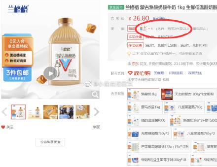 兰格格 蒙古熟酸奶酸牛奶 1kg,买4件68.04包邮,部分地区买2送1到手6件