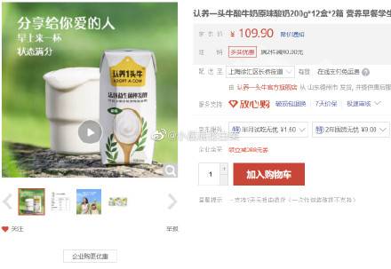 认养一头牛酸牛奶原味酸奶200g*12盒*2箱,买2件129.8包邮