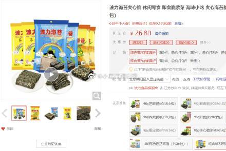 波力海苔 夹心脆组合72g(12g*6包),16.8包邮