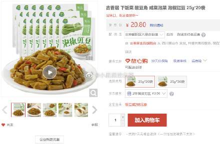 吉香居 泡椒豇豆 25g*20袋,9.8包邮