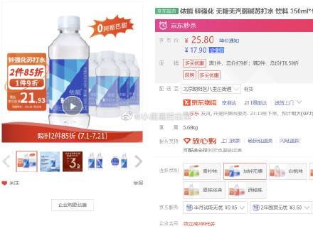 依能 锌强化 无糖无汽弱碱苏打水 350ml*15瓶,plus会员12.93